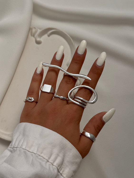 پک انگشتر آبکاری نقره شامل ۶ مدل انگشتر