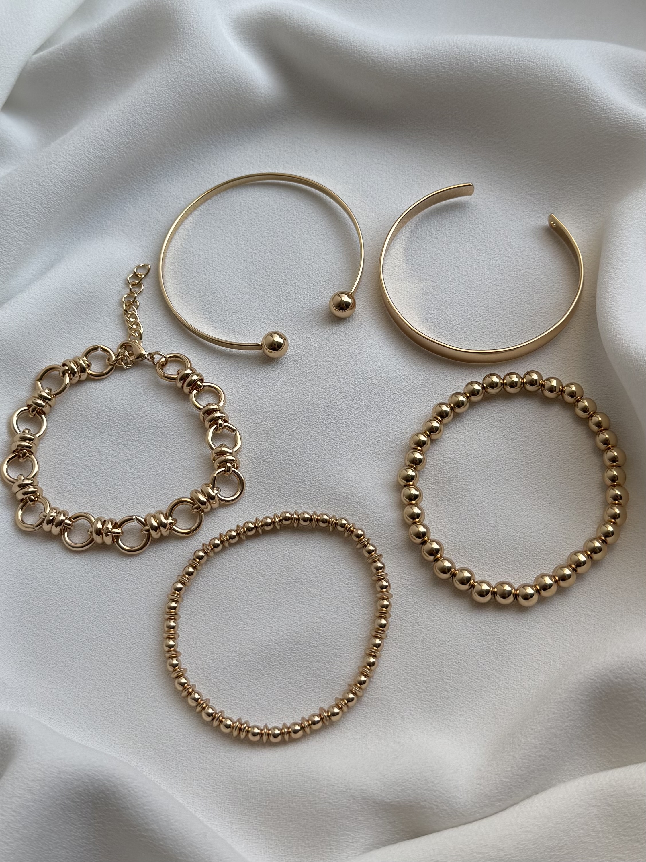 پک شامل پنج دستبند ( سه دستبند کشی ) + ( دو بنگل فری سایز )