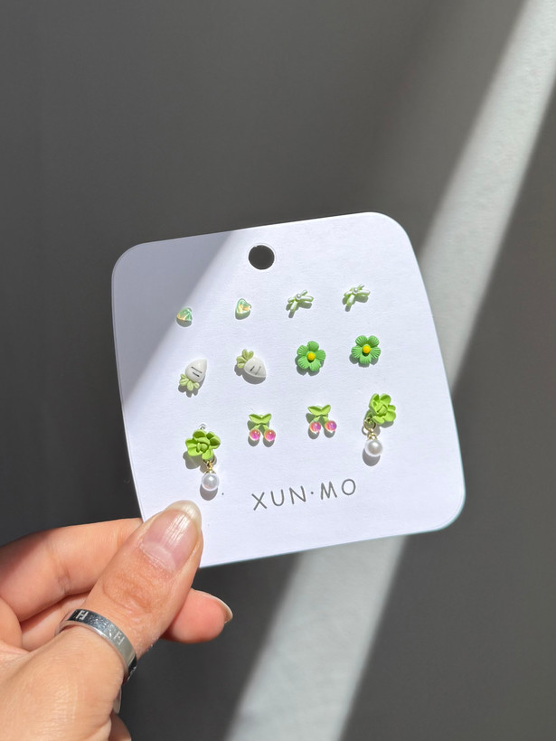 این گوشواره ها از جنس رزین یا خمیر فیمو هستن که کاملا رنگ ثابتن و میخشون هم از جنس نقره هستش برای کسایی که به بدلیجات حساسیت دارن کاملا مناسبه ✨