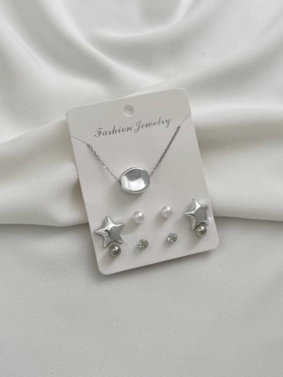 پک گردنبند و گوشواره آبکاری نقره - کد ۹۰۱
