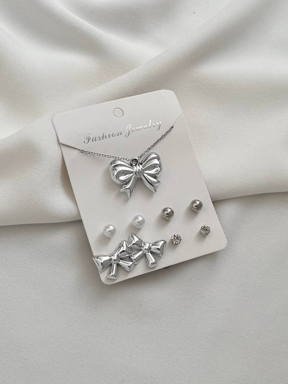پک گردنبند و گوشواره آبکاری نقره - کد ۹۰۸
