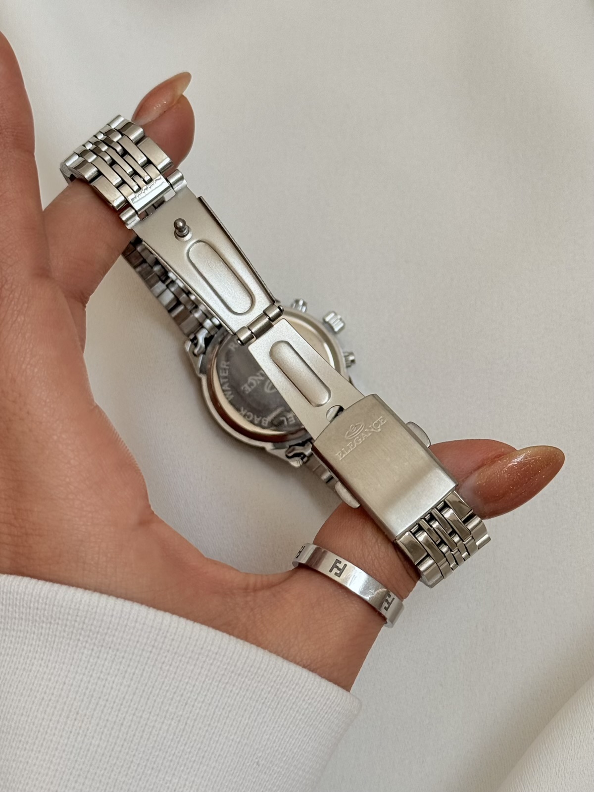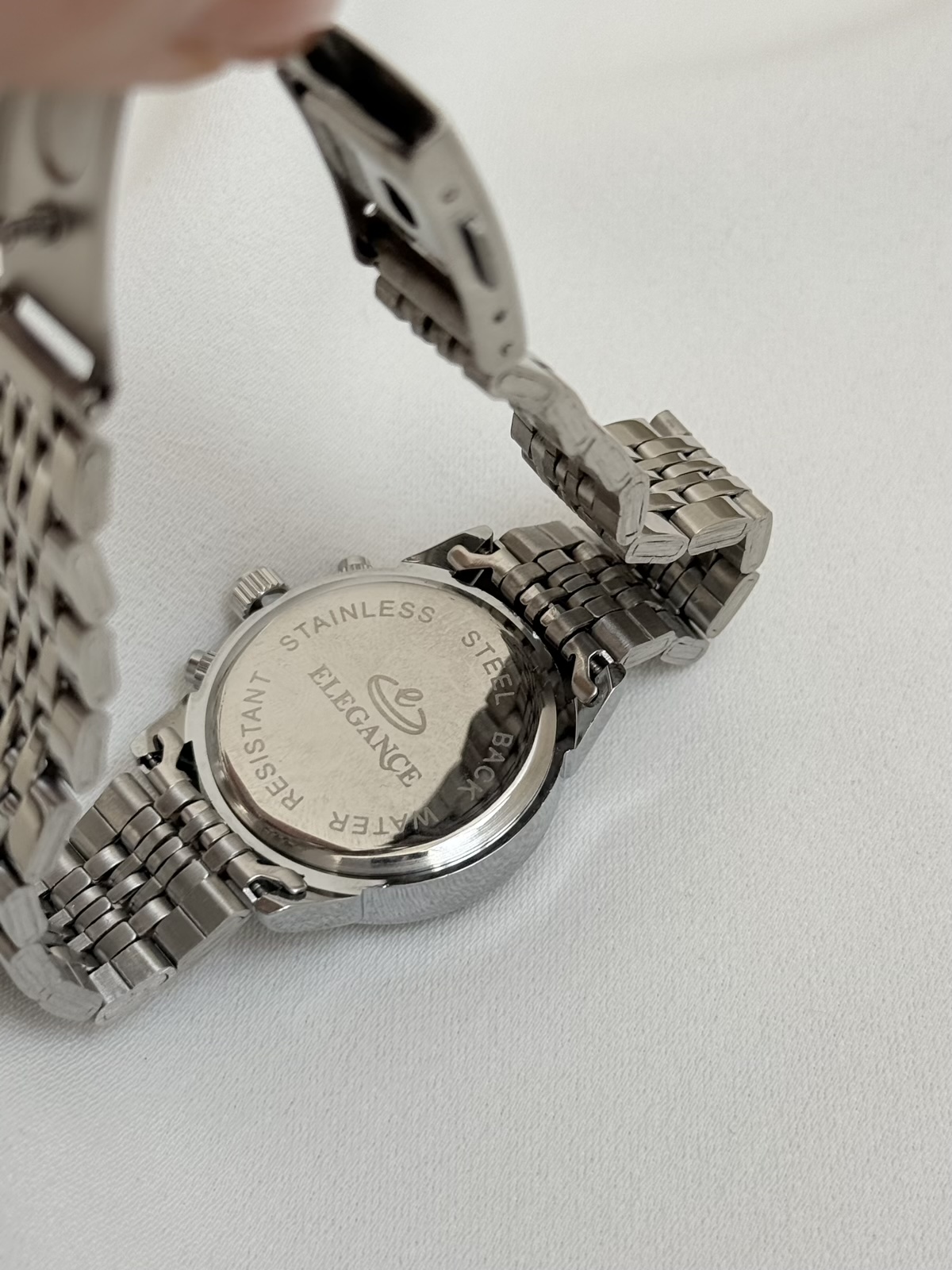 ساعت مچی الگانس زنانه رنگ ثابت ضد آب تا عمق ۲متری بدنه و بند استیل موتور ژاپن باتری و موتور قابل تعویض