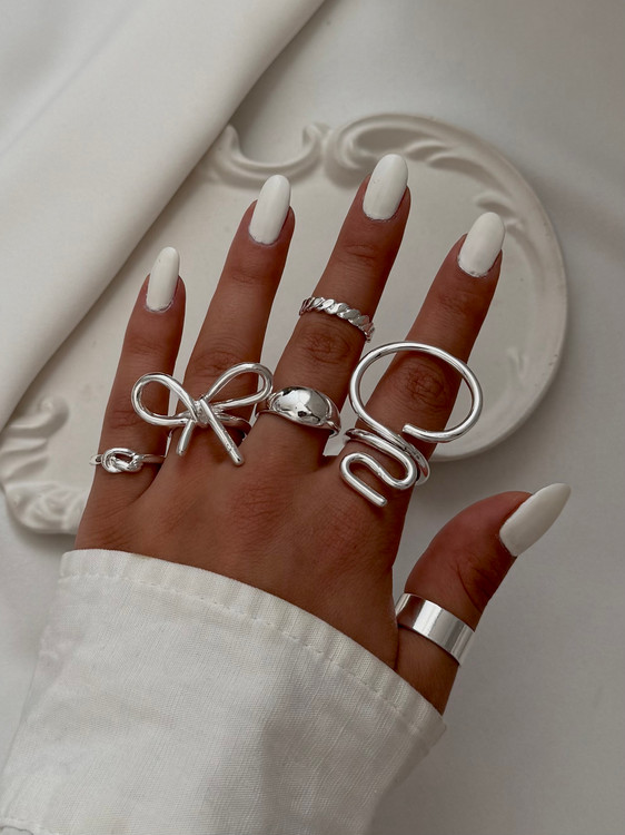پک انگشتر آبکاری نقره شامل ۶ مدل انگشتر