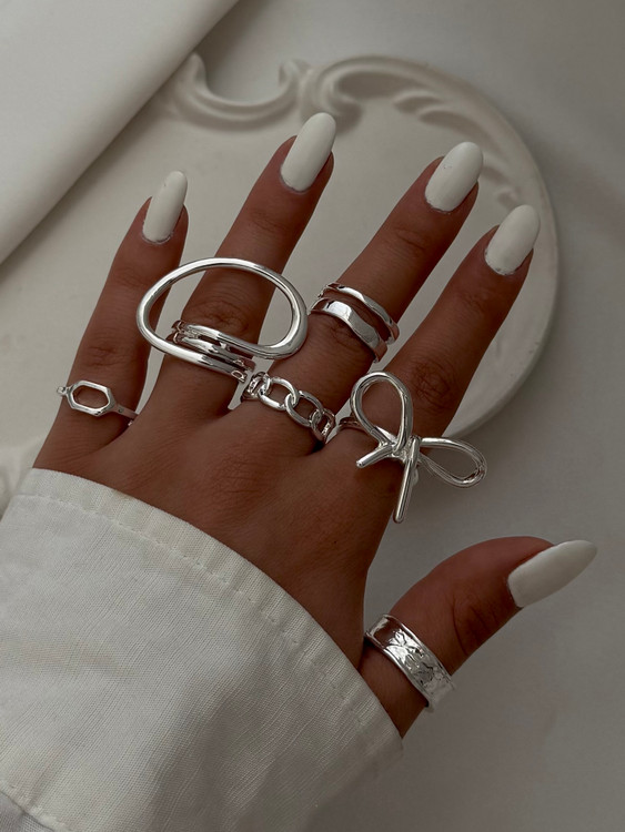 پک انگشتر آبکاری نقره شامل ۶ مدل انگشتر
