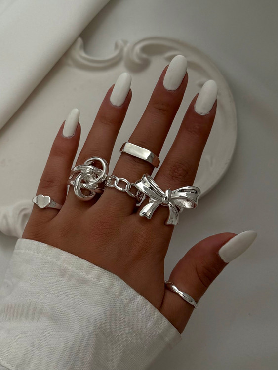 پک انگشتر آبکاری نقره - پاپیون و گره بزرگ