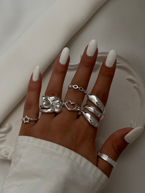 پک انگشتر آبکاری نقره - پیچک و پاپیون