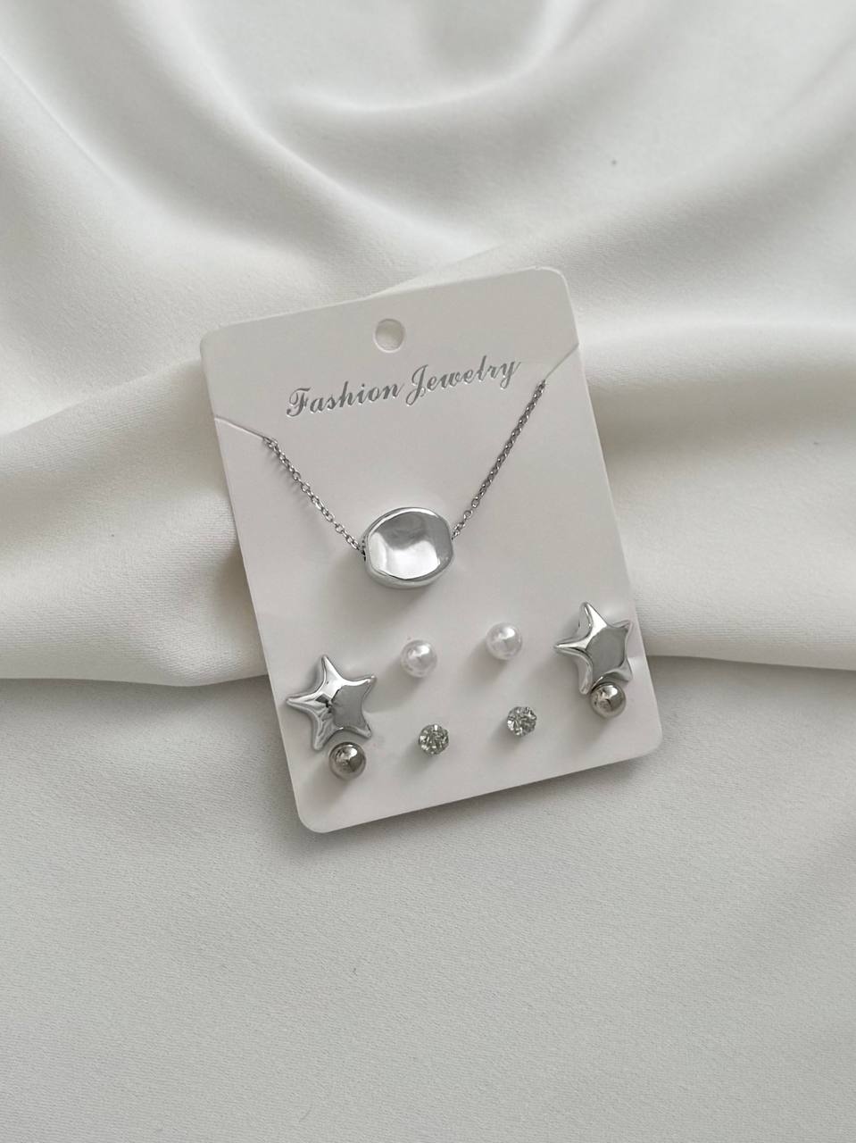 پک گردنبند و گوشواره آبکاری نقره - کد ۹۰۲